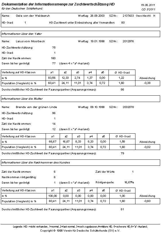 Dokumentation der Informationsmenge zur Zuchtschätzung HD |