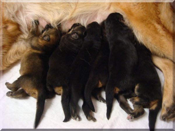 Welpen des M-Wurfes nach dem Universalsieger Gerry von der Waldesruh 1 Woche alt