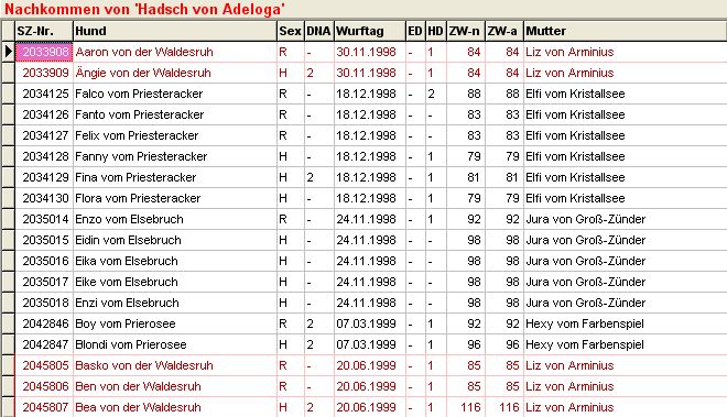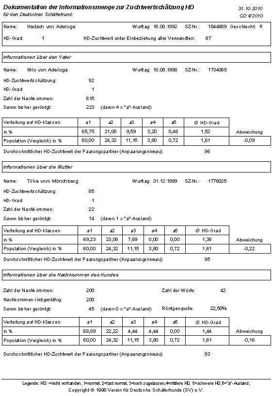 Dokumentation der Informationsmenge zur Zuchtschätzung HD |