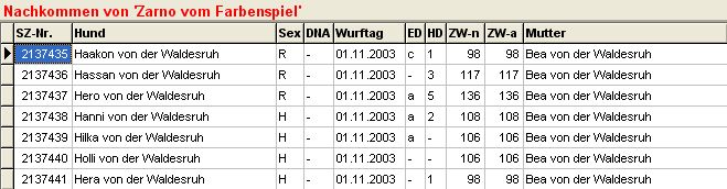 Dokumentation der Informationsmenge zur Zuchtschätzung HD |